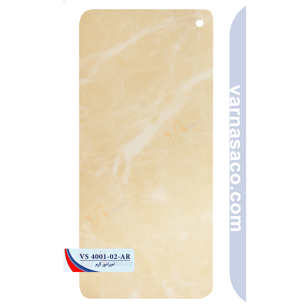 روکش رنگ/طرح امپرادور کرم ، از جمله پر فروش ترینهای این دسته از روکش های وارناسا می باشد .بافت این روکش صاف براق و دارای سلفون بوده که تمیز کردن آن را راحت تر می کند .همچنین نمای سنگی که به صفحات جزیره و جلو مبلی های منزل و… می بخشد ، طبیعت و تجسم سنگ را به خانه مصرف کننده می آورد.